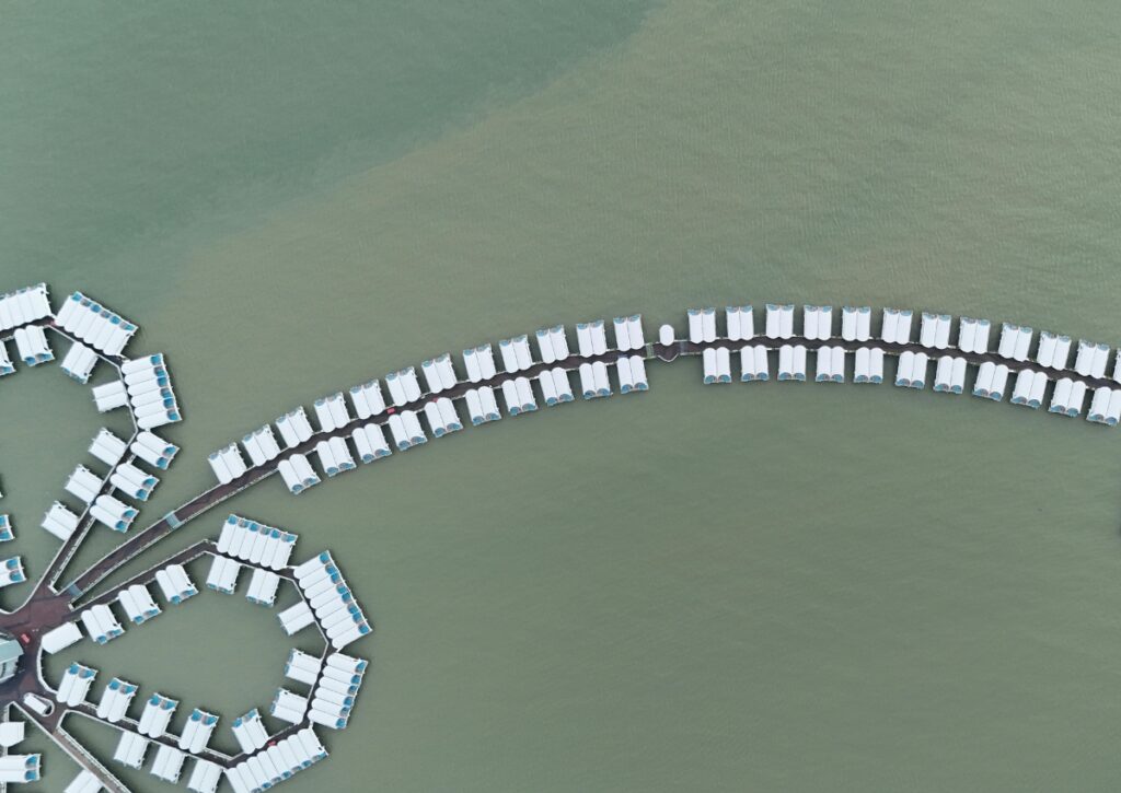 Let’s manage expectations. The water beneath these bungalows is not the glassy, translucent, glowing cyan of the South Pacific. It’s a deeper, murkier, opaque green. You aren’t coming here to strap on a snorkel. You are coming because every single unit—even the base level—has a totally private plunge pool and a glass floor panel built directly into the deck. For couples, the Panorama Pool Villas offer the best sweeping views of the sea, far away from the chaotic beach area.