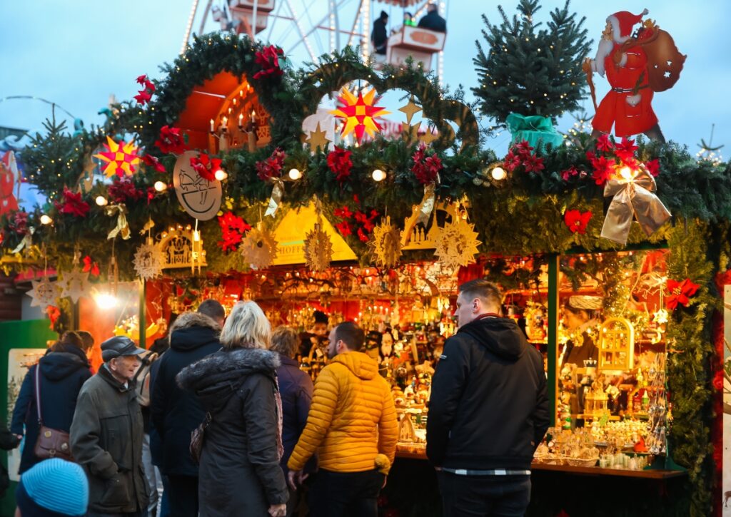 There’s something special about those red-and-white striped stall roofs that have become the visual symbol of German Christmas markets. Over 160 wooden booths fill the square, many run by families who’ve been selling at this market for three generations.