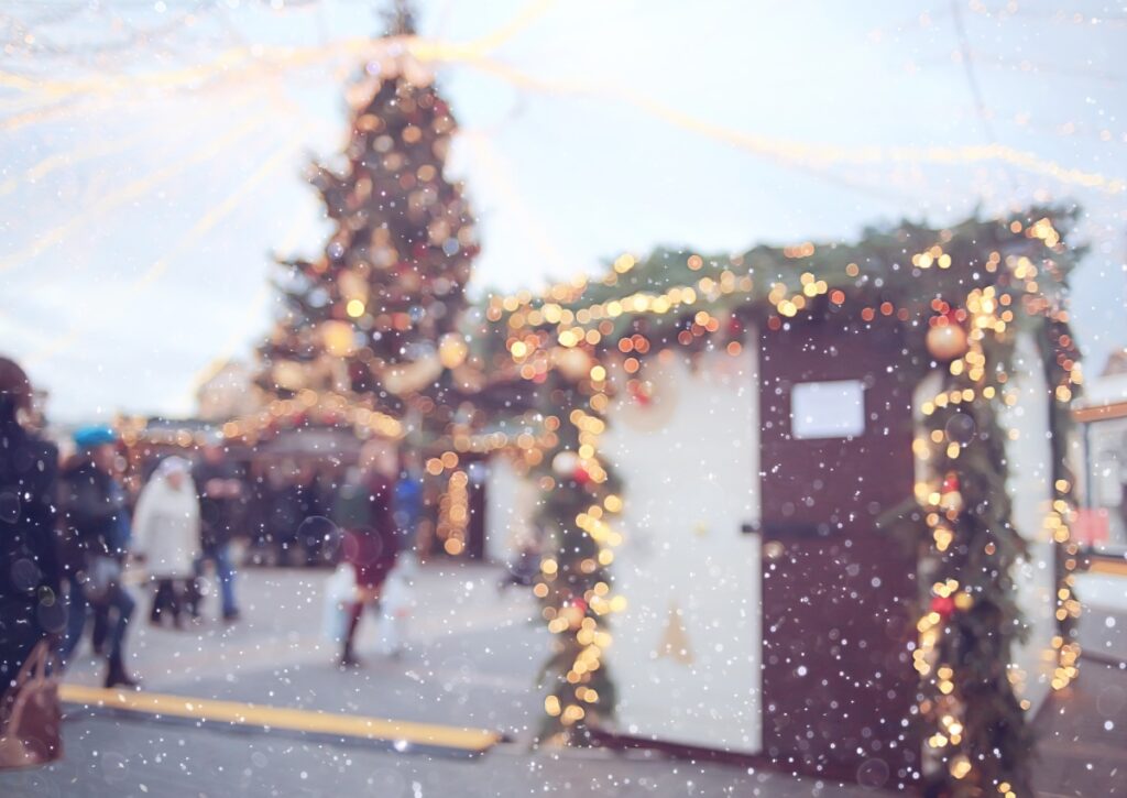 Wooden chalets draped in evergreen garlands line the cobblestones. White lights twinkle from every surface. An enormous Christmas tree towers in the center, decorated with thousands of ornaments. And everywhere – EVERYWHERE – there are people smiling, laughing, clutching steaming mugs of mulled wine.