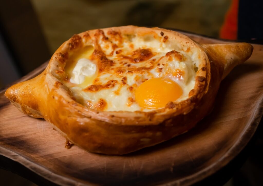 - Khachapuri (Adjaruli): The famous one. A boat-shaped bread, filled with molten cheese, and topped with a raw egg and a slice of butter that you stir in at the table. It’s decadent, ridiculous, and utterly sublime.